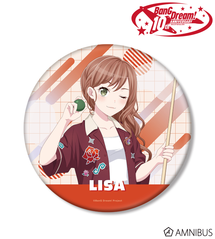 『BanG Dream!』×「ROUND1」のコラボレーションアイテム「描き下ろし 今井 リサ ボウリングシャツver. BIG缶バッジ」の登場です。