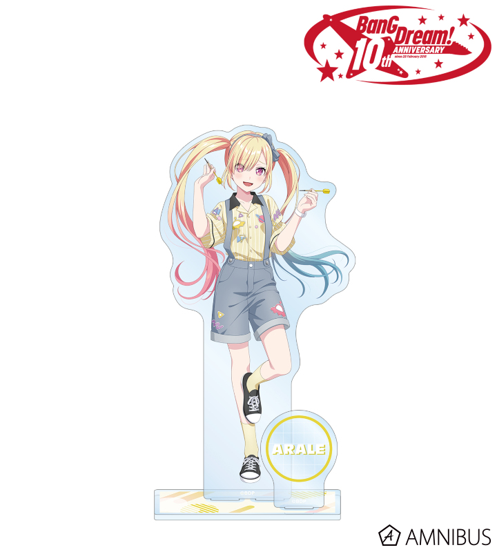 『BanG Dream!』×「ROUND1」のコラボレーションアイテム「描き下ろし 仲町 あられ ボウリングシャツver. パーツ付きBIGアクリルスタンド」の登場です。