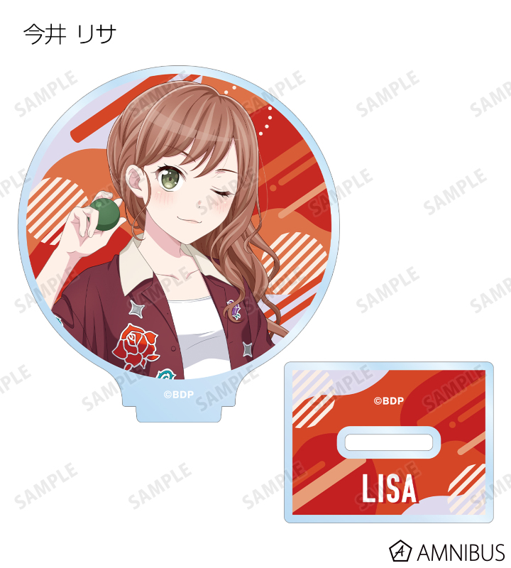 山吹 沙綾、美竹 蘭、大和 麻弥、今井 リサ、松原 花音、桐ヶ谷 透子、ロック、千早 愛音、アモーリス、仲町 あられの描き下ろしイラストをアクリルスタンドに仕上げました。