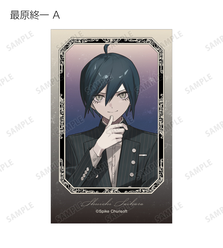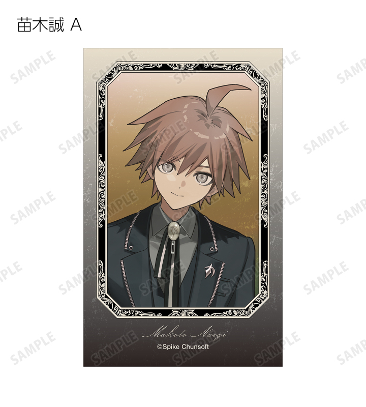 およさん描き起こしイラストの苗木誠、霧切響子、セレスティア・ルーデンベルク、江ノ島盾子、日向創、狛枝凪斗、田中眼蛇夢、七海千秋、赤松楓、天海蘭太郎、王馬小吉、最原終一をイラストカードに仕上げました。
