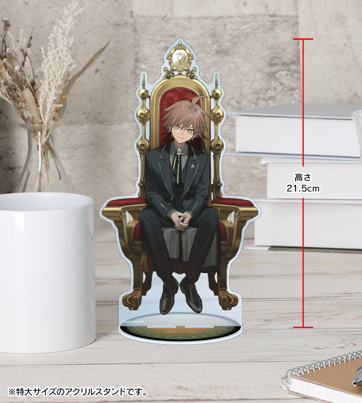 『ダンガンロンパシリーズ』×「およ」のコラボレーションアイテム「およさんイラスト 苗木誠 玉座ver. 特大アクリルスタンド」の登場です。