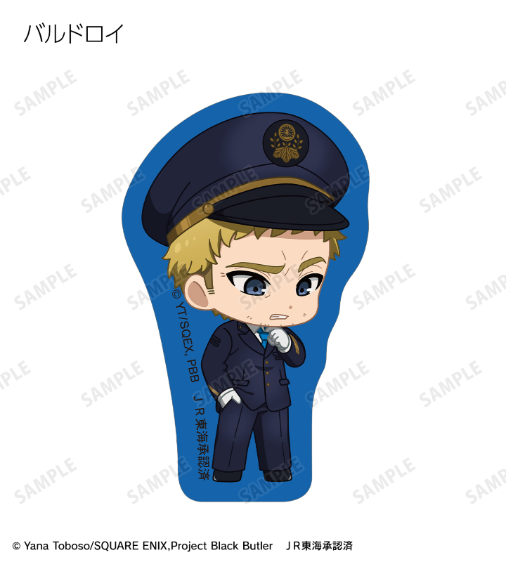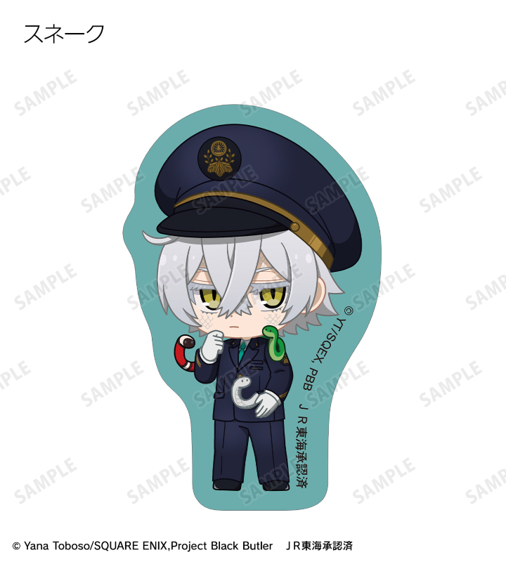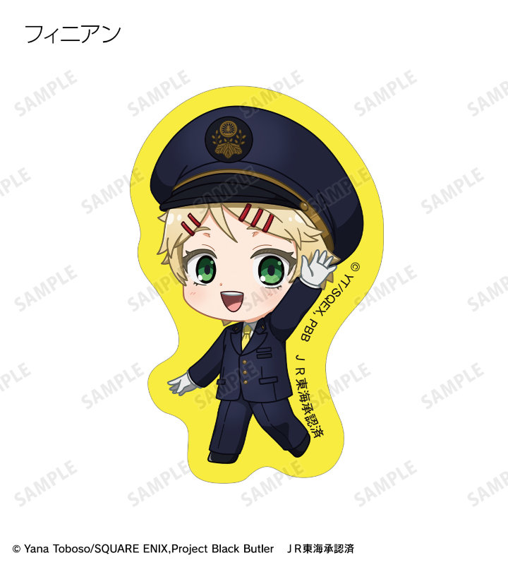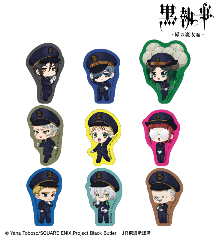 アニメ『黒執事 -緑の魔女編-』×「推し旅/JR東海」のコラボレーションアイテム「ちびキャラ 駅員ver. フレークシール」の登場です。