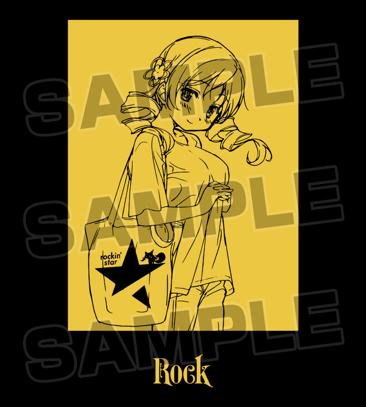 SHIBUYA109で開催の「rockin’star×魔法少女まどか☆マギカ POP UP SHOP in MAGNET by SHIBUYA109」描き下ろしイラストの巴マミをメインにデザインしました。