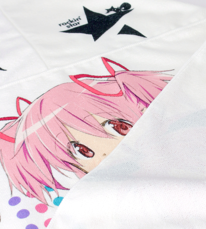 『劇場版 魔法少女まどか☆マギカ[新編]叛逆の物語』×「rockin’star」のコラボレーションアイテム「rockin’starコラボ 描き下ろしイラスト フード付きタオル」の登場です。 SHIBUYA109で開催の「rockin’star×魔法少女まどか☆マギカ POP UP SHOP in MAGNET by SHIBUYA109」描き下ろしイラストをメインにデザインしました。 フードで顔や首を覆うことができ、小雨時の雨よけ・日除け対策などにもお使いいただけるアイテムです。