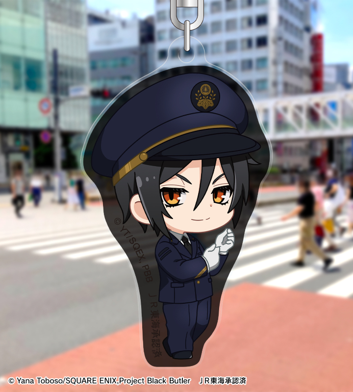 アニメ『黒執事 -緑の魔女編-』×「推し旅/JR東海」のコラボレーションアイテム「トレーディング ちびキャラ 駅員ver. アクリルキーホルダー」の登場です。