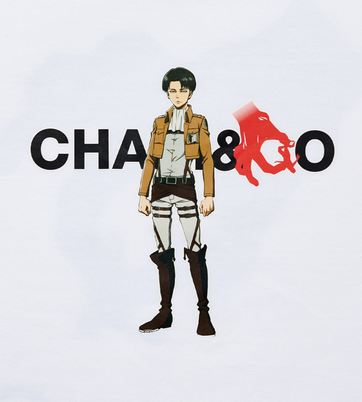 『TVアニメ『進撃の巨人』』のコラボレーションアイテム「LIEUTENANT L/S TEE」の登場です。 フロントに佇む兵長。インパクト大な L/S TEE。