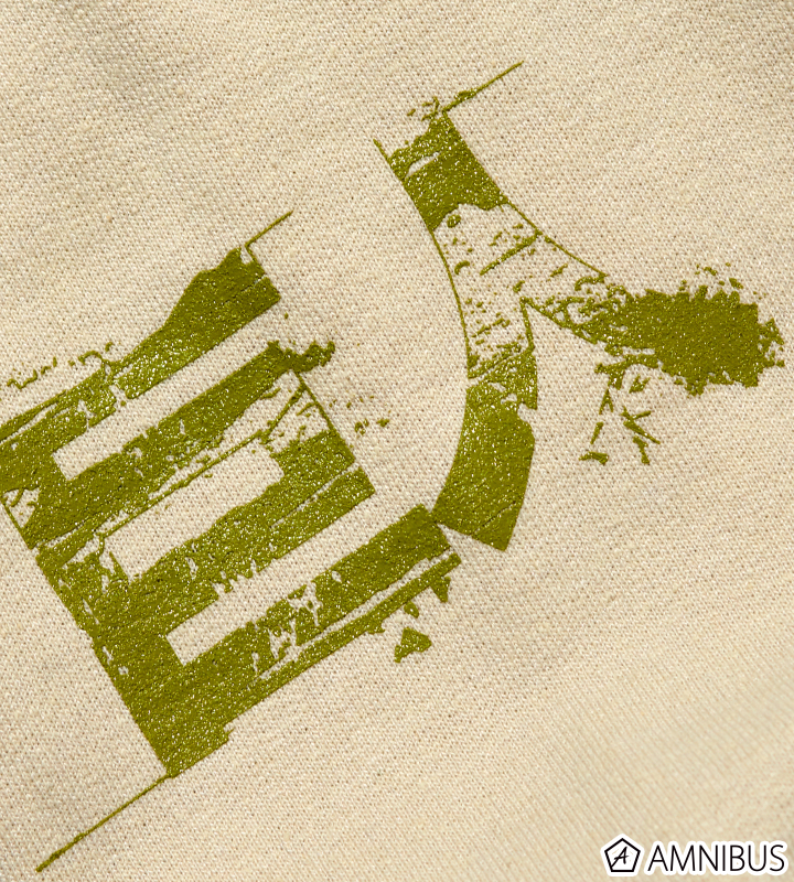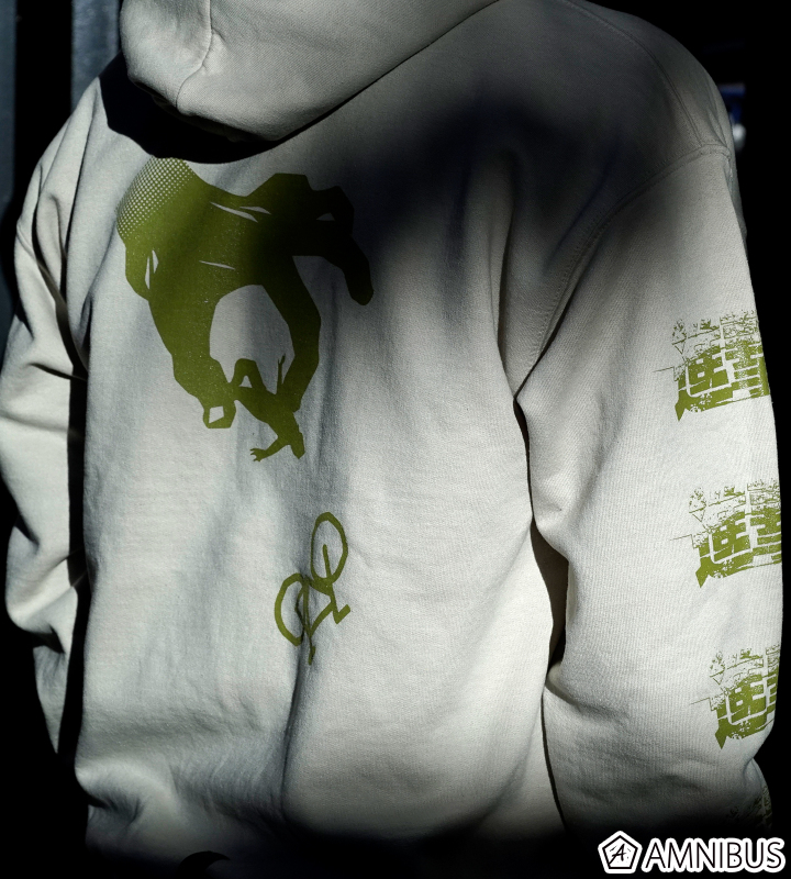 それぞれの袖に“進撃”と“巨人”を落とし込んだ、HOODIE SWEATS。フード口にはオリジナルロゴを配置した象徴的な一枚。