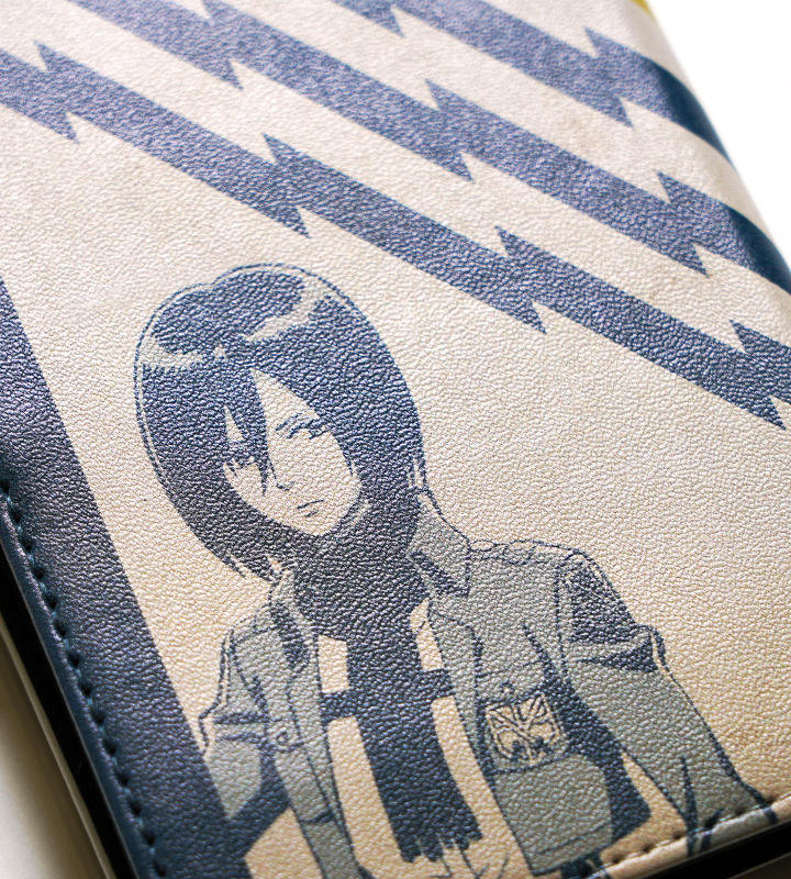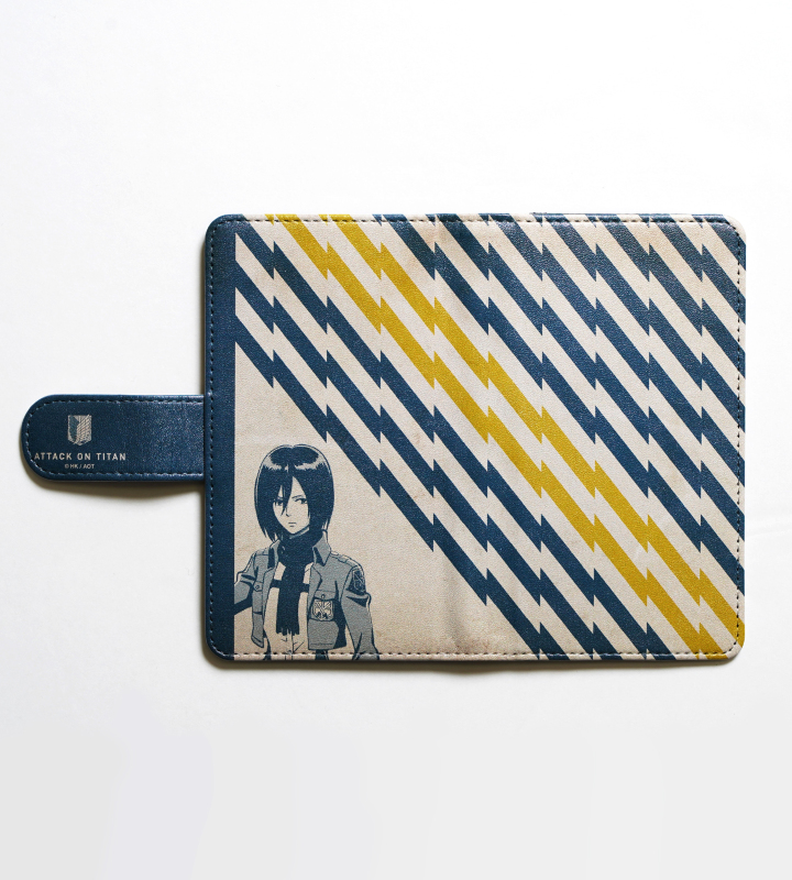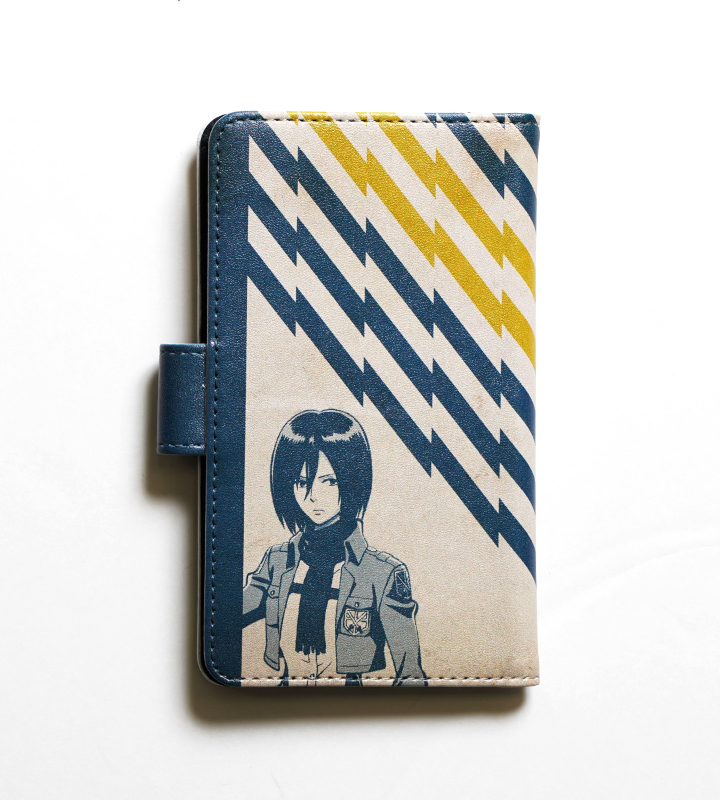 ミカサ・アッカーマンをバランスよく配置した手帳型スマホケース。