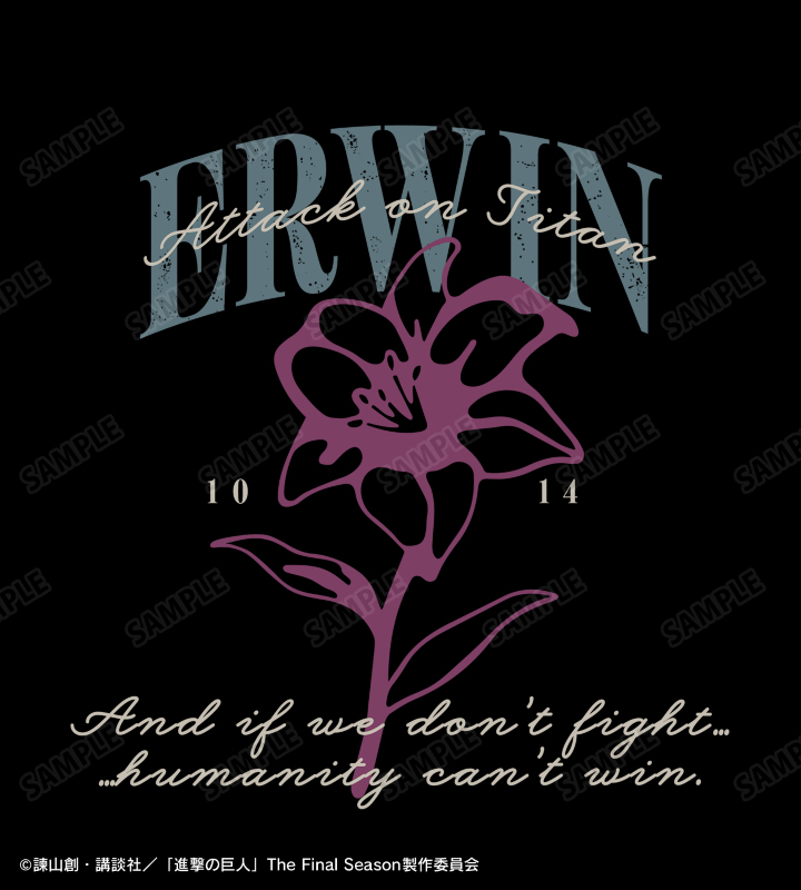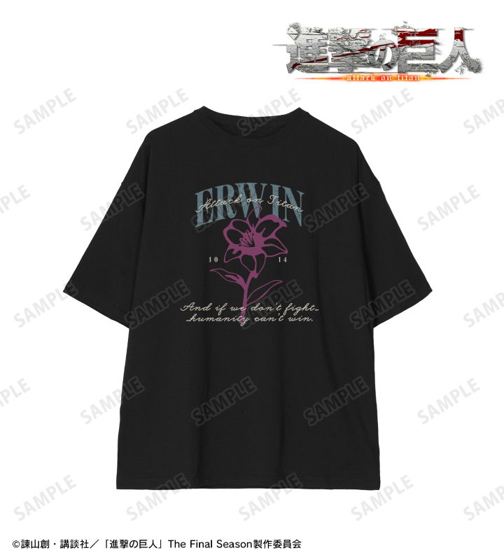 TVアニメ『進撃の巨人』から日常で使える統一感をテーマにしたデザインシリーズ「ar-Unity」のアイテム「エルヴィン ar-Unity BIGシルエットTシャツ」の登場です。
