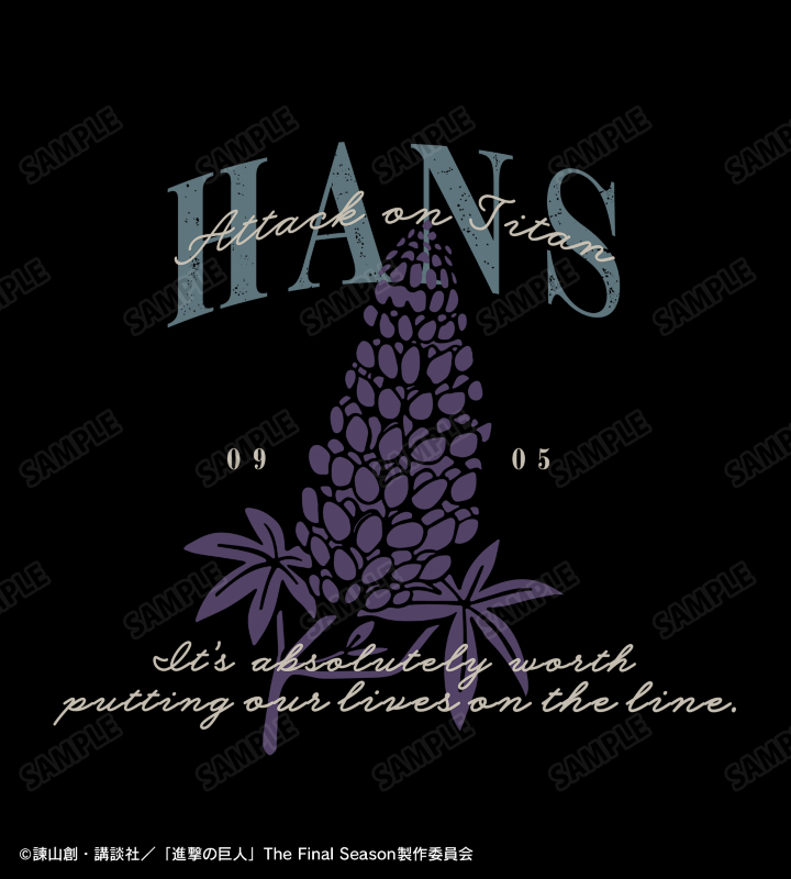 ハンジの名前、誕生日、ルピナスをBIGなシルエットTシャツに仕上げました。