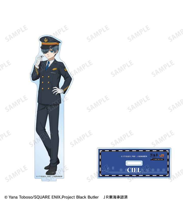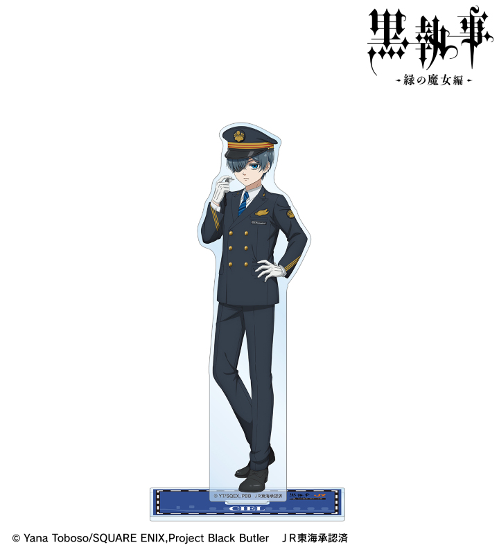 アニメ『黒執事 -緑の魔女編-』×「推し旅/JR東海」のコラボレーションアイテム「描き下ろし シエル・ファントムハイヴ 駅員ver. BIGアクリルスタンド」の登場です。