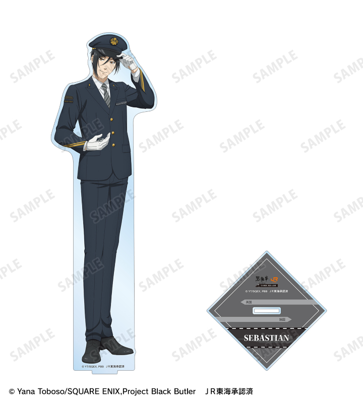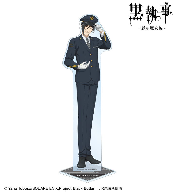 アニメ『黒執事 -緑の魔女編-』×「推し旅/JR東海」のコラボレーションアイテム「描き下ろし セバスチャン・ミカエリス 駅員ver. 特大アクリルスタンド」の登場です。