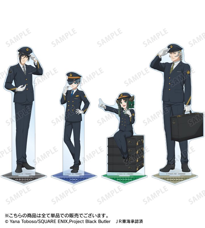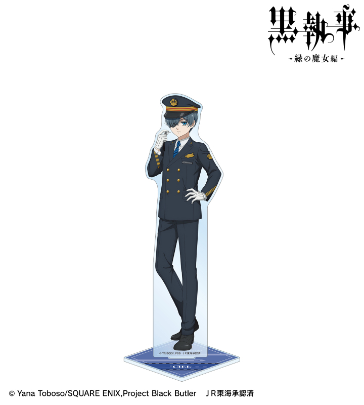 アニメ『黒執事 -緑の魔女編-』×「推し旅/JR東海」のコラボレーションアイテム「描き下ろし シエル・ファントムハイヴ 駅員ver. 特大アクリルスタンド」の登場です。
