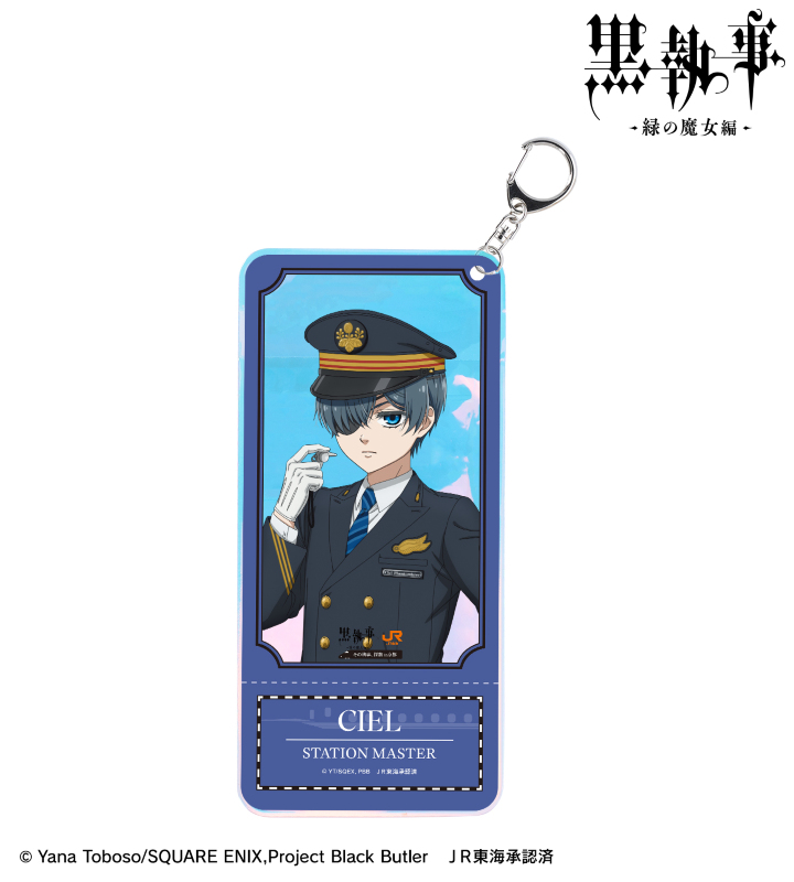 アニメ『黒執事 -緑の魔女編-』×「推し旅/JR東海」のコラボレーションアイテム「描き下ろし シエル・ファントムハイヴ 駅員ver. オーロラチケットホルダー」の登場です。
