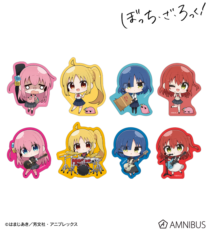 アニメ「ぼっち・ざ・ろっく!」×「むーらん」のコラボレーションアイテム「むーらんさんイラスト 制服ver.&ライブ衣装ver. トレーディングダイカットステッカー」の登場です。