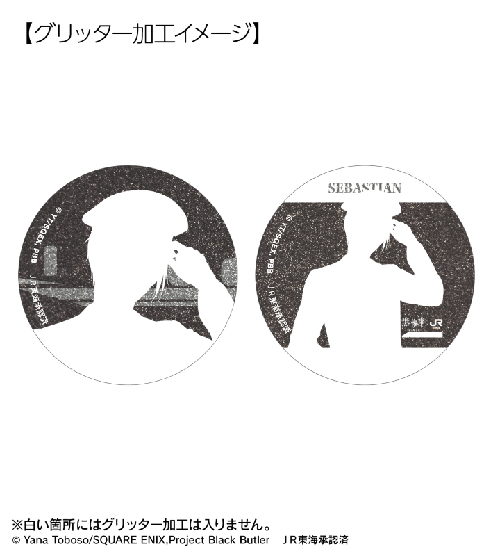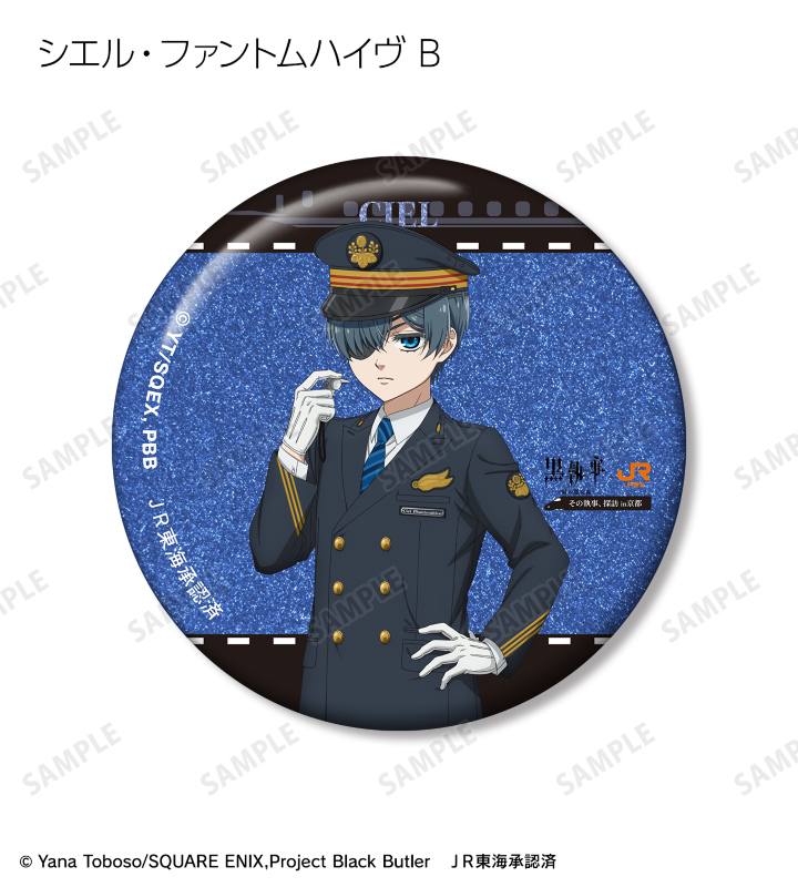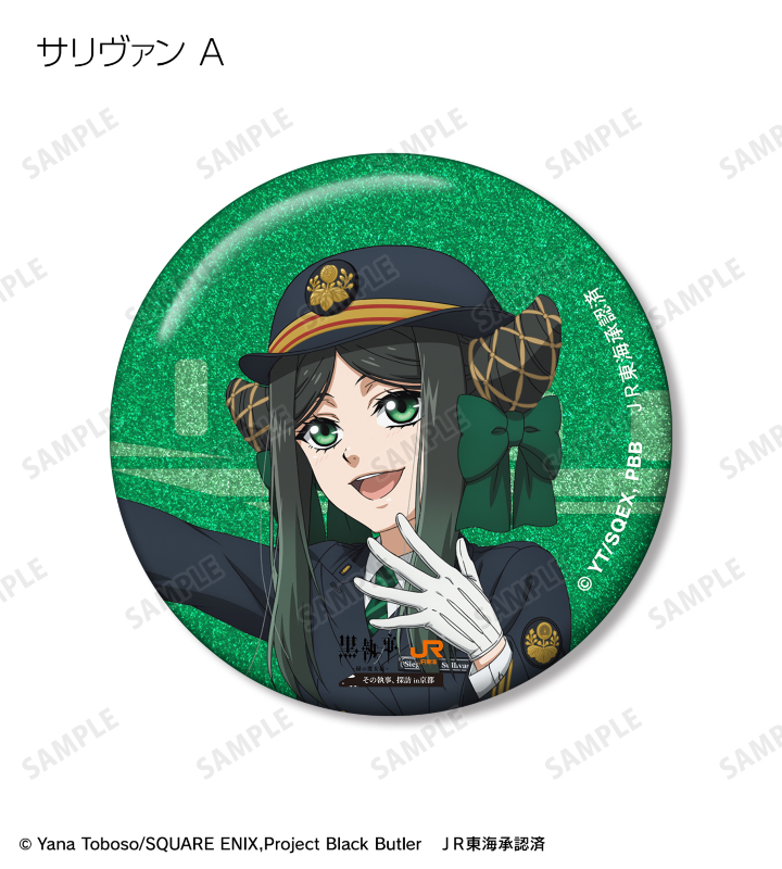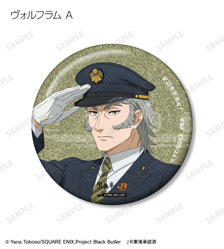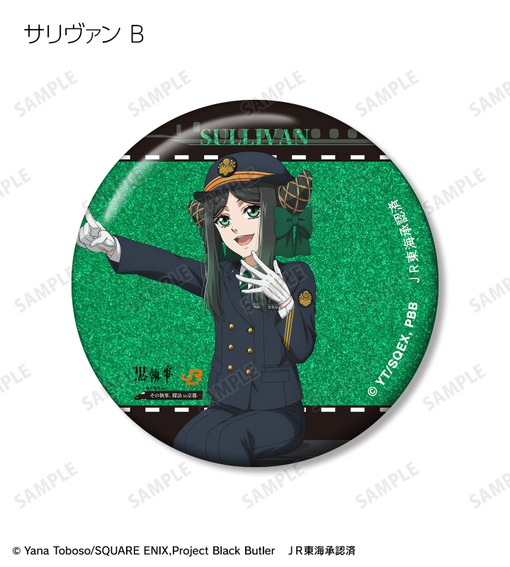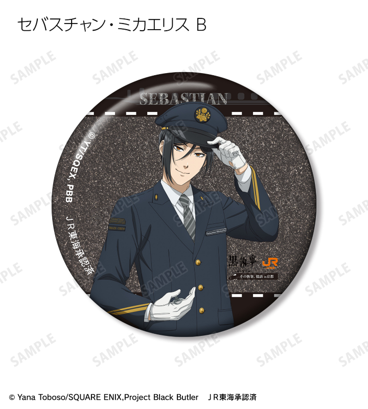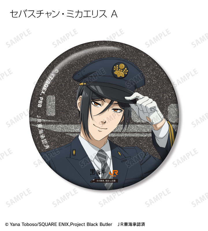 アニメ『黒執事 -緑の魔女編-』×「推し旅/JR東海」のコラボレーションアイテム「描き下ろし 駅員ver. トレーディンググリッター缶バッジ」の登場です。