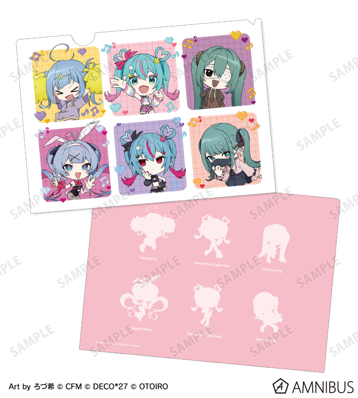 ろづ希さん描き下ろしのデコミク (ライトネス)、デコミク (ダークネス)、テレパシ、モニタリング、ラビットホール、ヴァンパイアのちびキャライラストをメインにデザインし、クリアファイルに仕上げました。