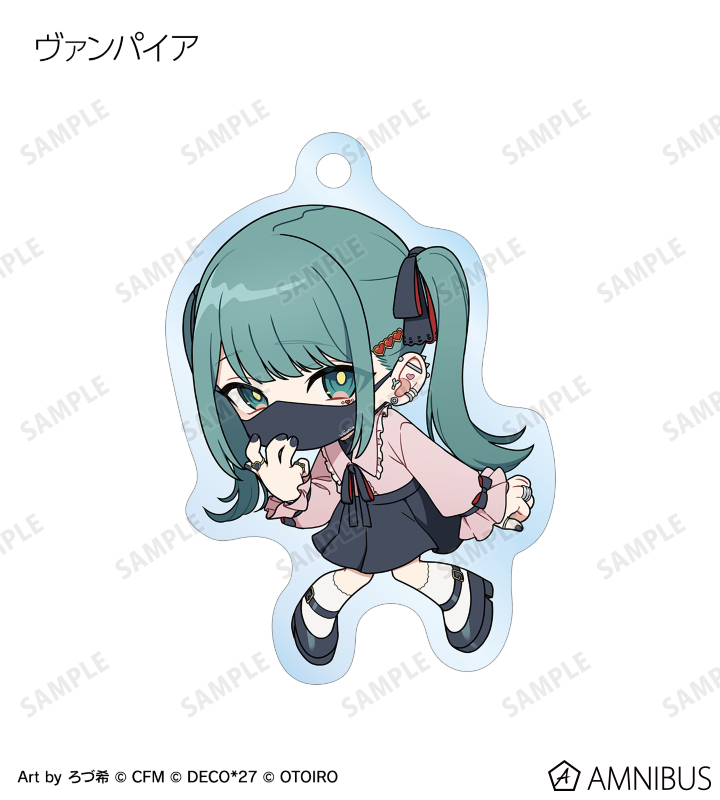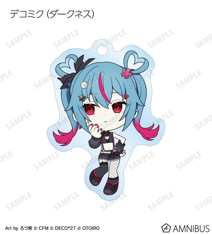 ろづ希さん描き下ろしのデコミク (ライトネス)、デコミク (ダークネス)、テレパシ、モニタリング、ラビットホール、ヴァンパイアのちびキャライラストをメインにデザインし、アクリルキーホルダーに仕上げました。