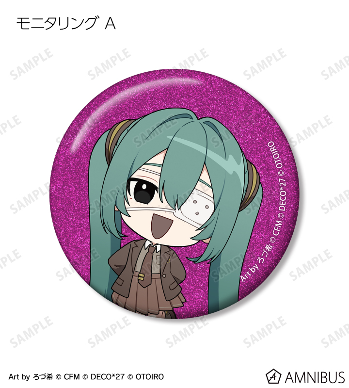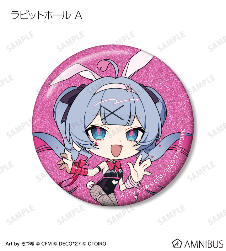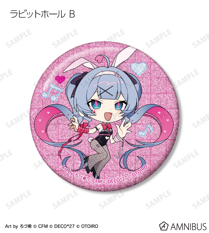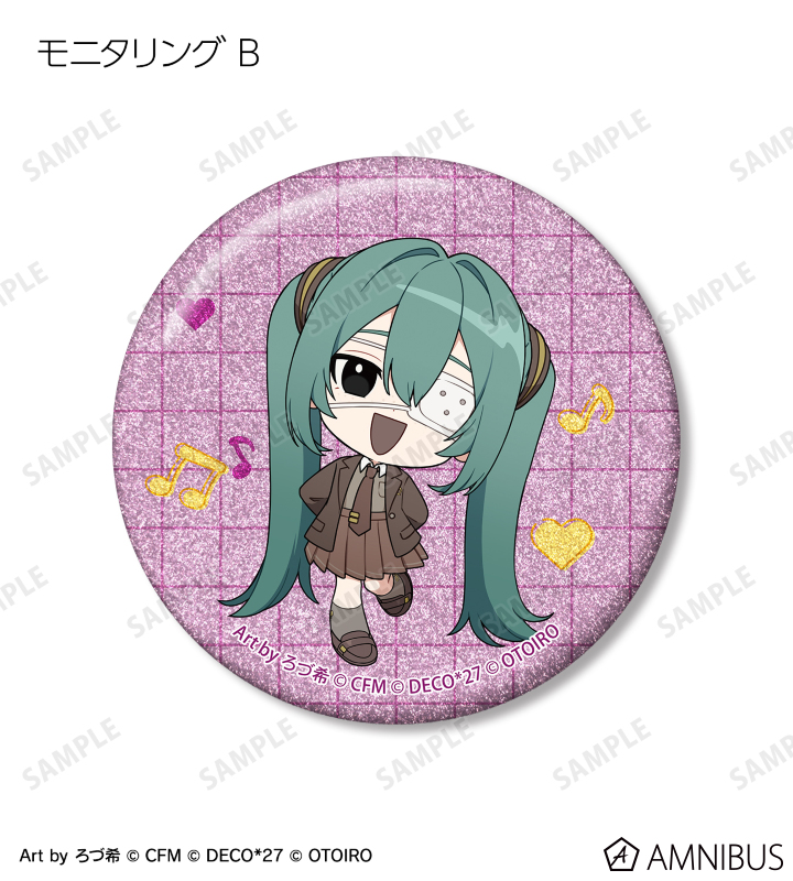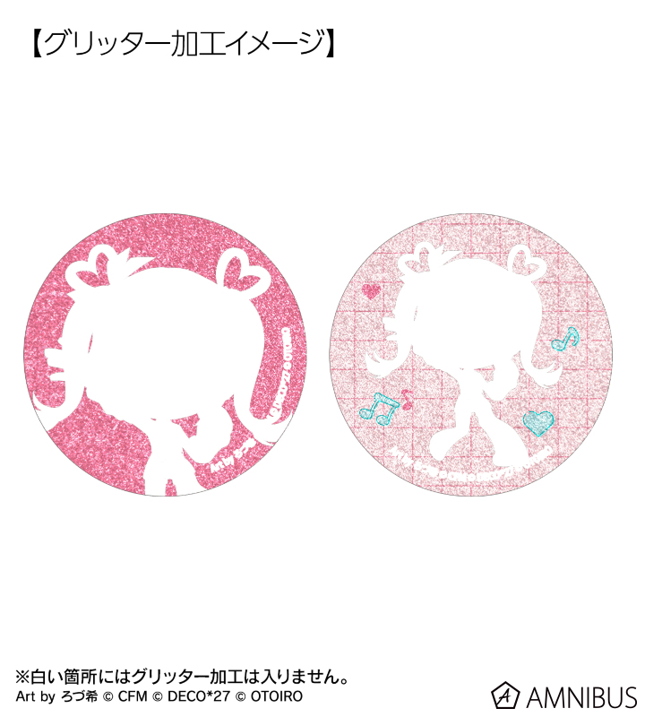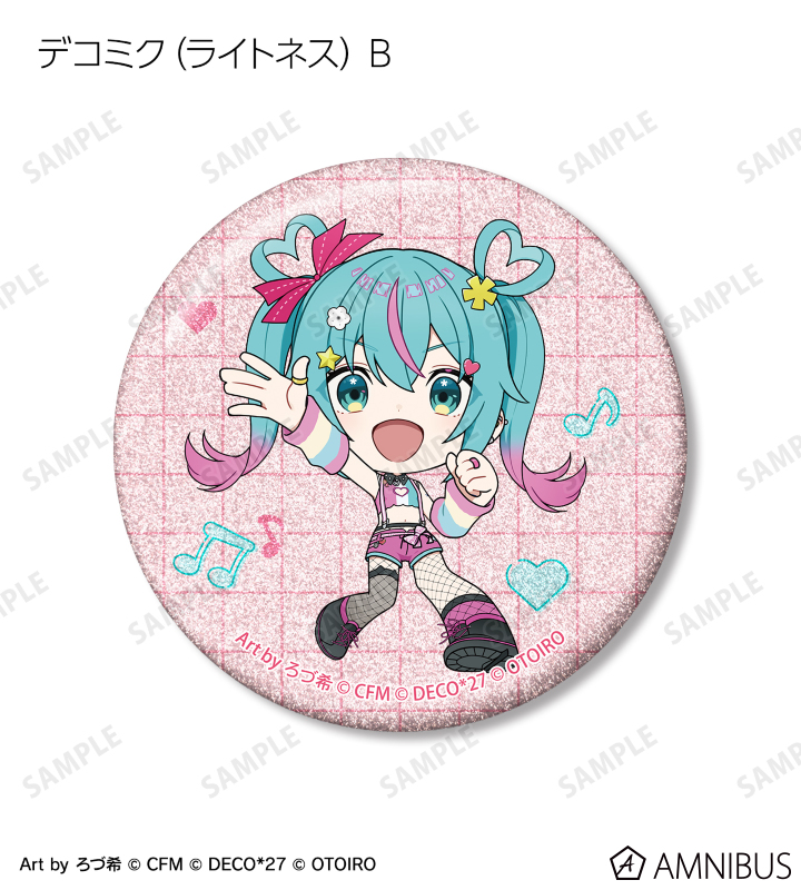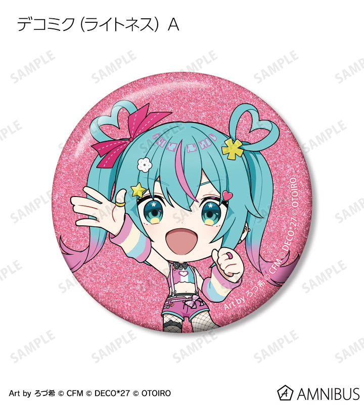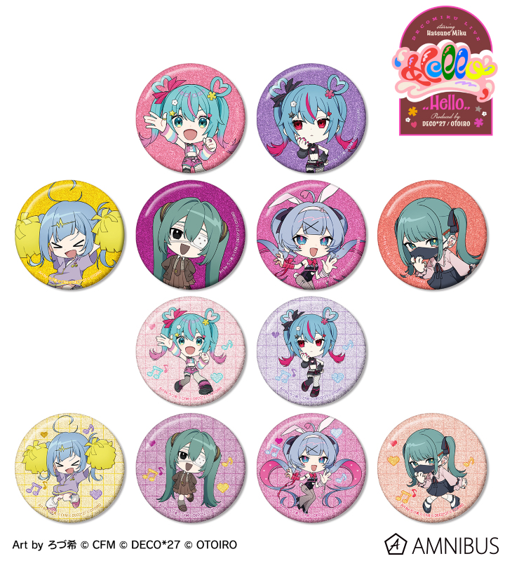 デコミクLIVE starring 初音ミク『Hello』Produced by DECO*27 / OTOIRO×「カラオケの鉄人」のコラボレーションアイテム「ちびキャラ Art by ろづ希 トレーディンググリッター缶バッジ」の登場です。