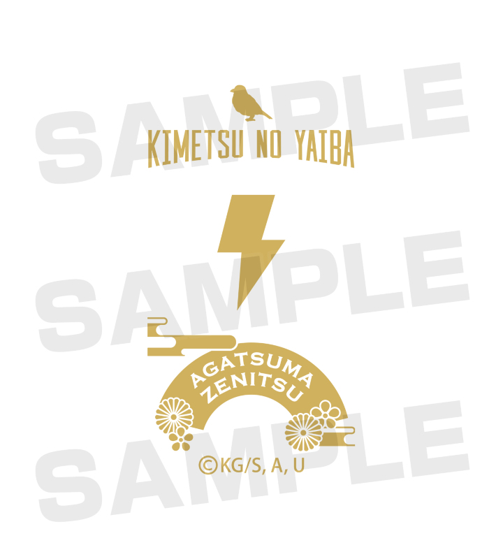我妻善逸の名前や雷、チュン太郎などを組み合わせ、キャラクターからイメージしたカラーリングに仕上げて軸部分にプリントしました。