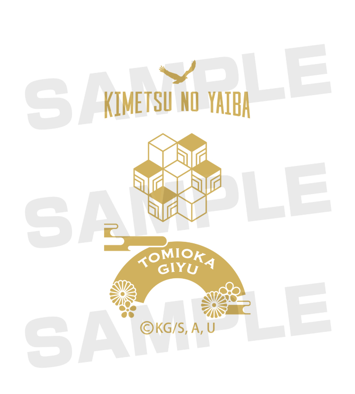 冨岡義勇の名前や羽織、鎹鴉などを組み合わせ、キャラクターからイメージしたカラーリングに仕上げて軸部分にプリントしました。