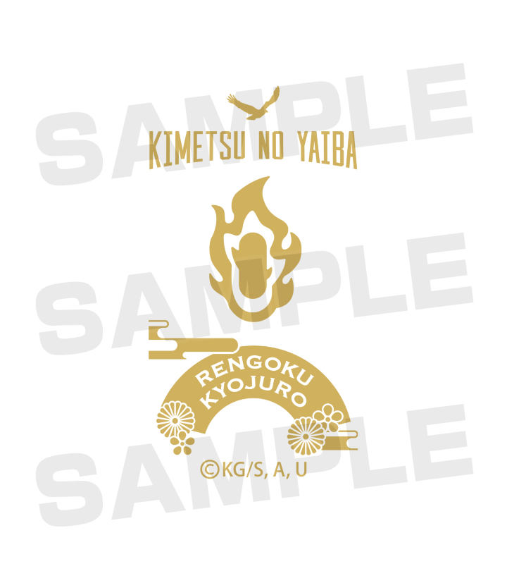 煉󠄁獄杏寿郎の名前や日輪刀の鍔、鎹鴉などを組み合わせ、キャラクターからイメージしたカラーリングに仕上げて軸部分にプリントしました。
