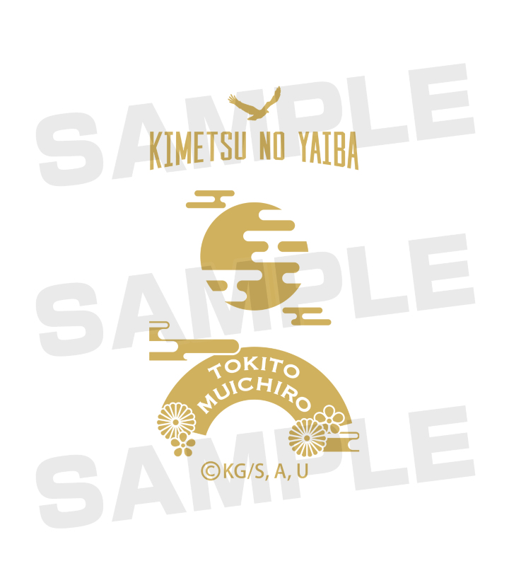 時透無一郎の名前や霞の模様、鎹鴉などを組み合わせ、キャラクターからイメージしたカラーリングに仕上げて軸部分にプリントしました。