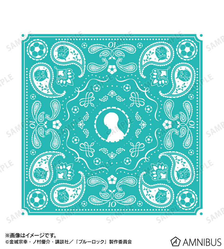 糸師 凛のシルエットをメインにフクロウのモチーフをペイズリー柄に落とし込んでバンダナ風デザインのTシャツに仕上げました。