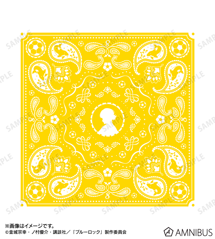 蜂楽 廻のシルエットをメインにイルカのモチーフをペイズリー柄に落とし込んでバンダナ風デザインのTシャツに仕上げました。