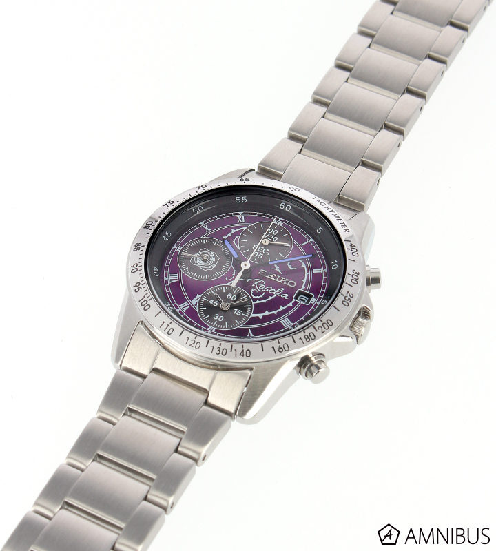文字盤をダークでクールな印象の黒と紫を基調に仕上げ、「Roselia」のモチーフである薔薇の花や茨をアクセントにデザインしました。