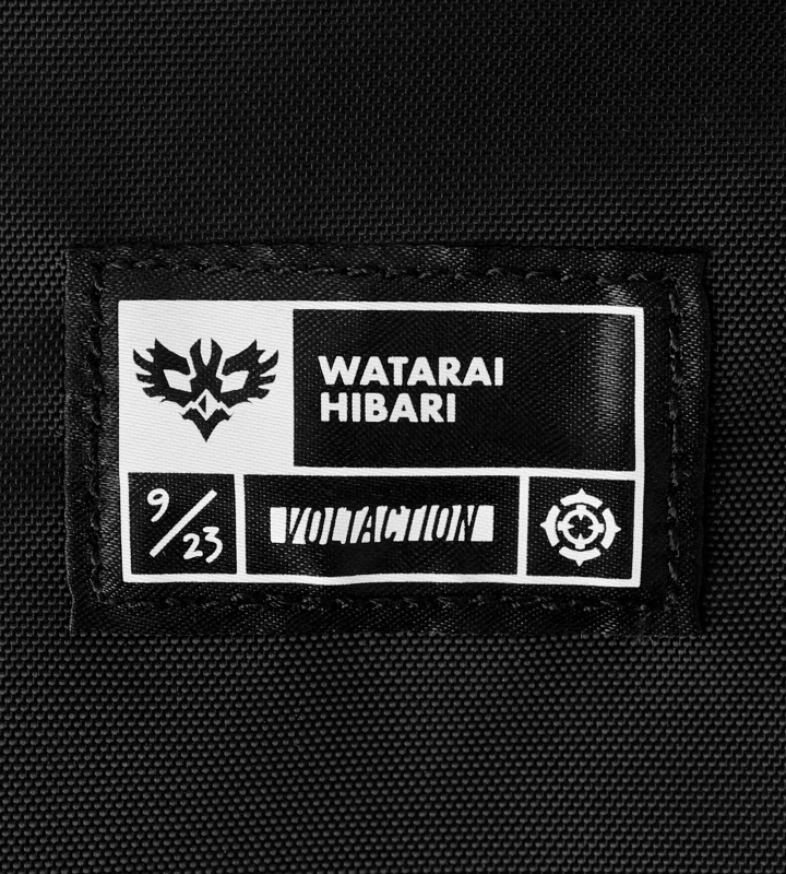 内側にはVOLTACTIONとライバーをモチーフにしたオリジナルタグを縫い付け、コラボレーションならではの特別な仕上がりとなっております。