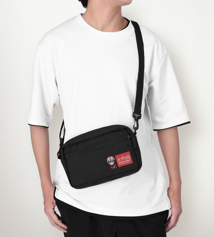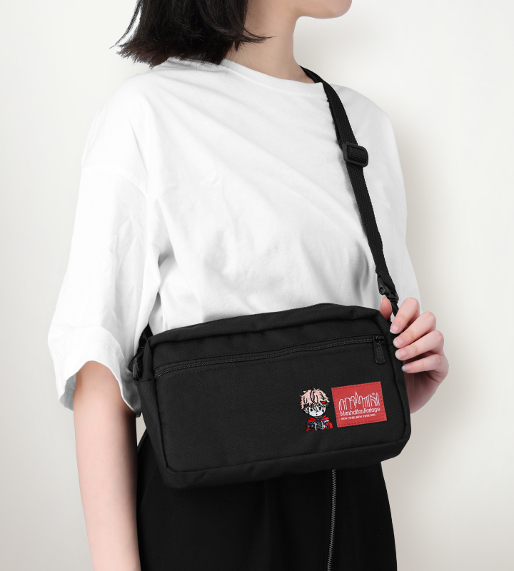 Manhattan Portageで人気のショルダーバッグをベースに、表にはManhattan Portageのロゴの隣へ、セラフ・ダズルガーデンさんの「池之内Bさん撮りおろし デフォルメビジュアル」を使用した刺繍で表現。
