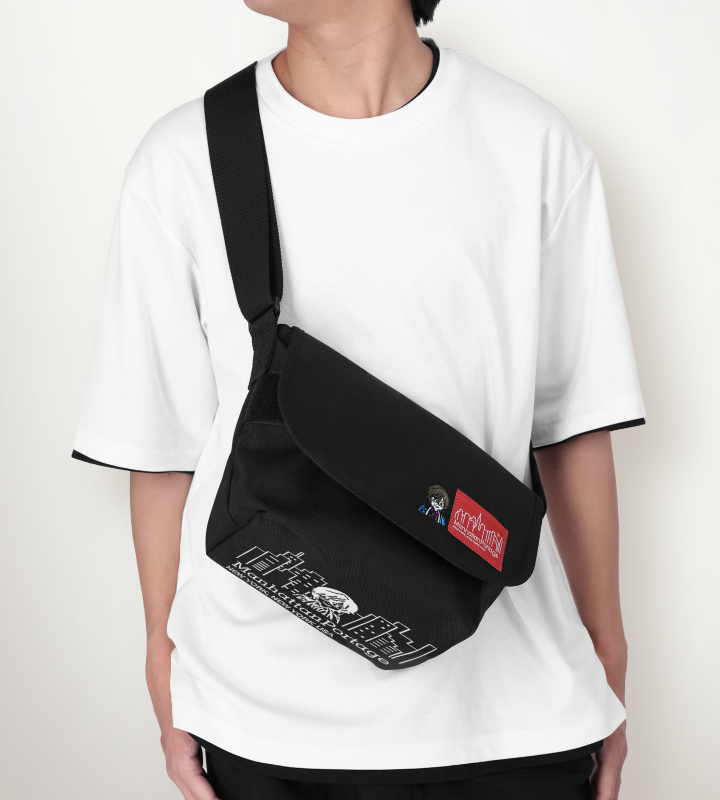 Manhattan Portageのアイデンティティを体現する王道のメッセンジャーバッグをベースに、フラップにはManhattan Portageのロゴの隣へ、四季凪アキラさんの「池之内Bさん撮りおろし デフォルメビジュアル」を使用した刺繍で表現。