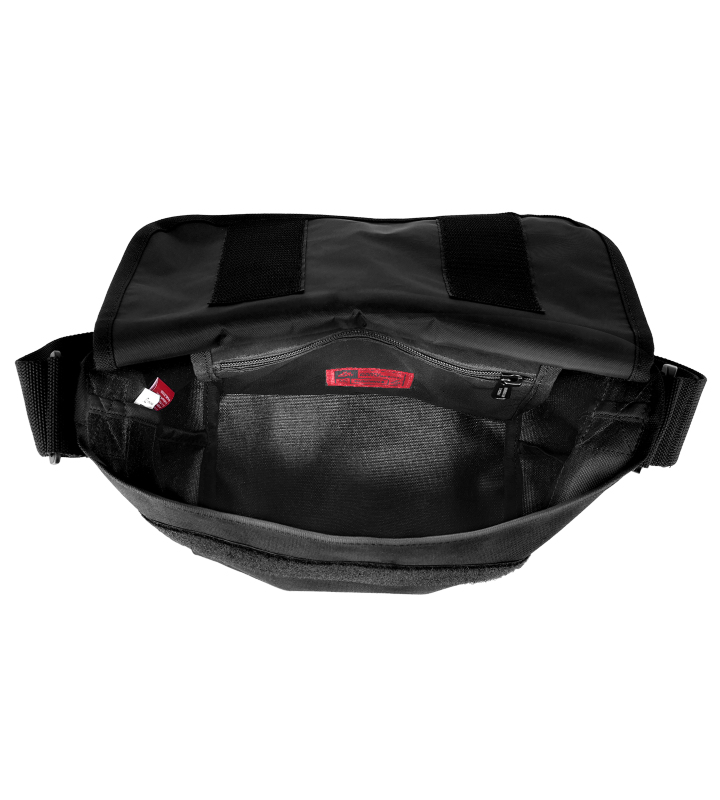 Manhattan Portageのアイデンティティを体現する王道のメッセンジャーバッグをベースに、フラップにはManhattan Portageのロゴの隣へ、セラフ・ダズルガーデンさんの「池之内Bさん撮りおろし デフォルメビジュアル」を使用した刺繍で表現。