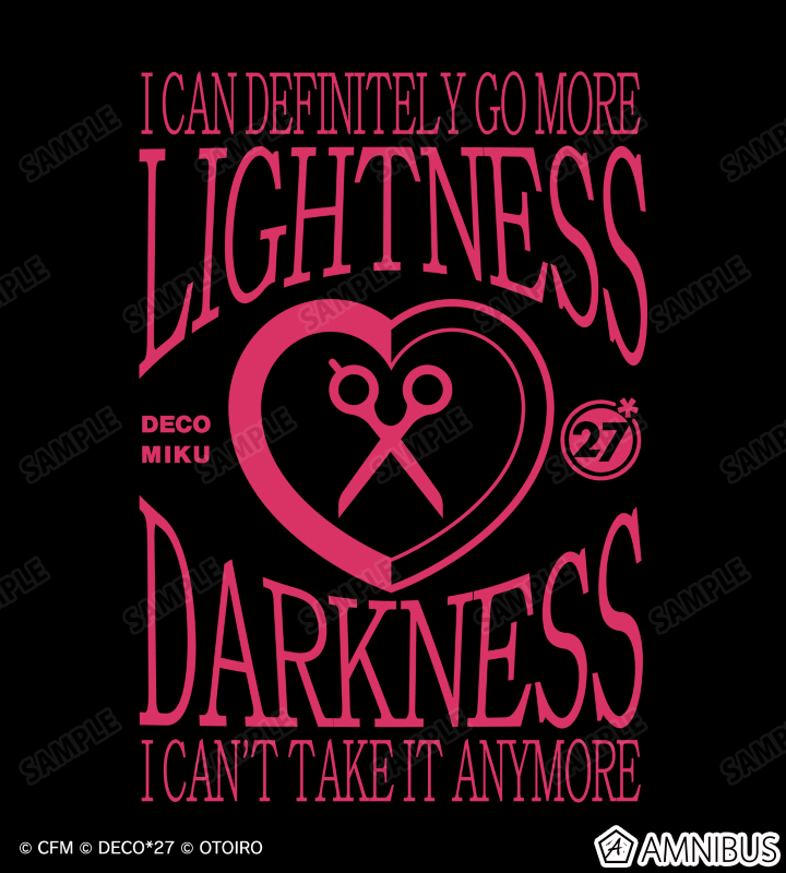 デコミク (ライトネス)、デコミク (ダークネス)の印象的なモチーフを使用したデザインを、フロントに大胆にプリントしました。