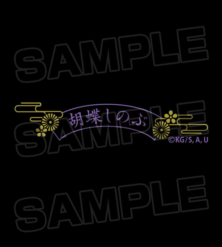 胡蝶しのぶの名前や和風のモチーフを組み合わせたデザインと、しのぶの髪飾りの蝶を黒の軸部分にプリントしています。