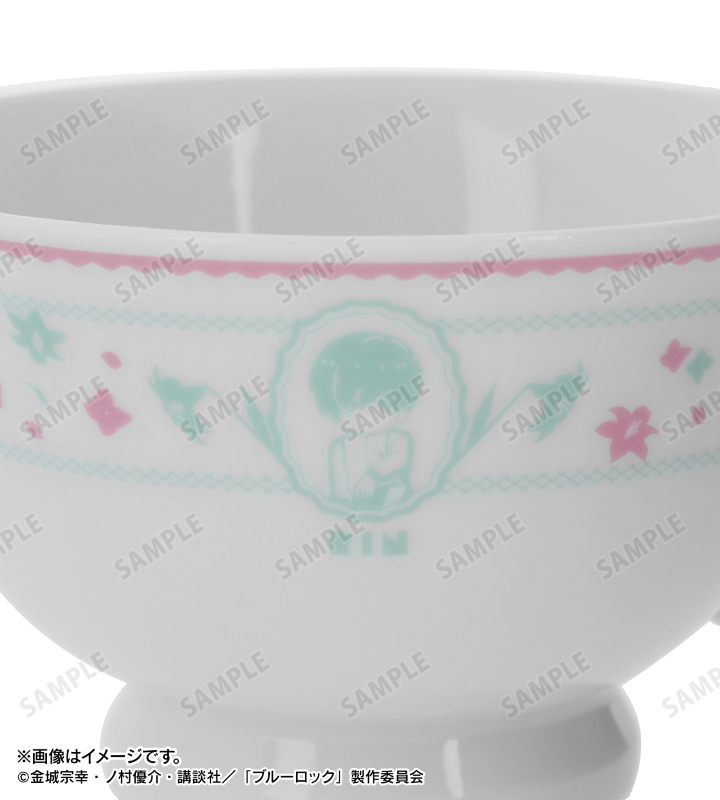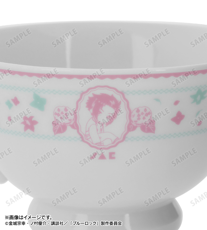糸師 凛、糸師 冴のイラスト、各キャラクターをイメージした花をボタニカルデザインに落とし込んで繊細なタッチで新たに描き起こし、カップ&ソーサーに仕上げました。