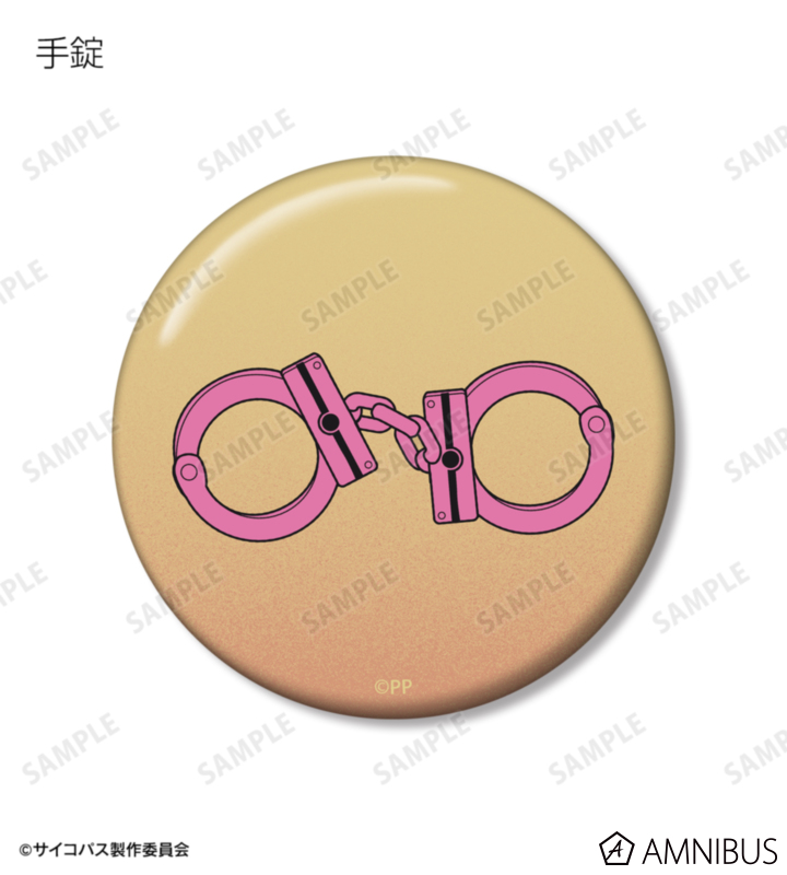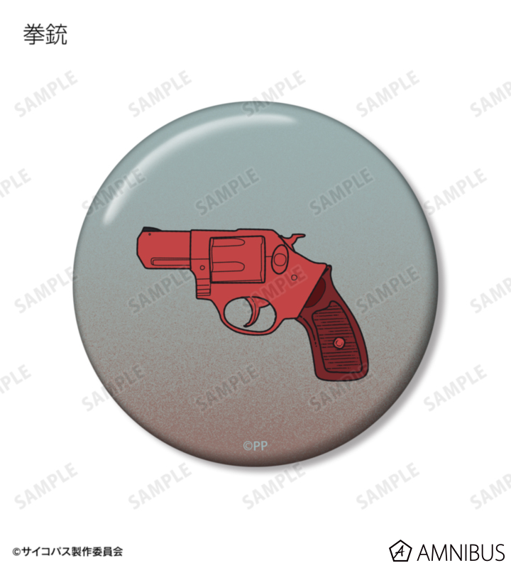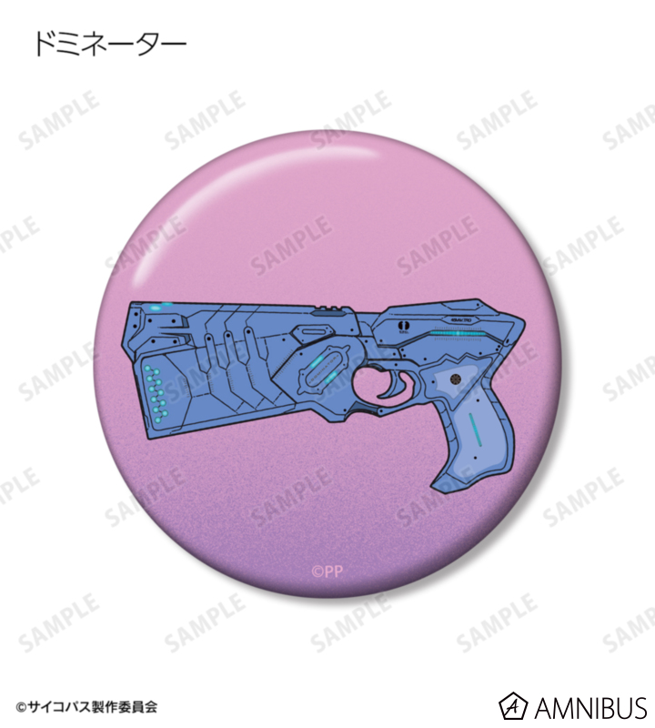シビュラシステム、ドミネーター、リボルバー、SPINEL、手錠の描き起こしモチーフを缶バッジ5個セットに仕上げました。