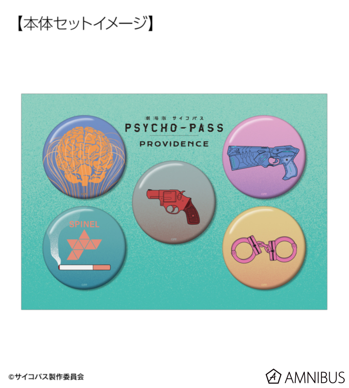 『劇場版 PSYCHO-PASS サイコパス PROVIDENCE』から日常で使える統一感をテーマにしたデザインシリーズ「ar-Unity」のアイテム「公安局刑事課モチーフ ar-Unity 缶バッジ5個セット」の登場です。