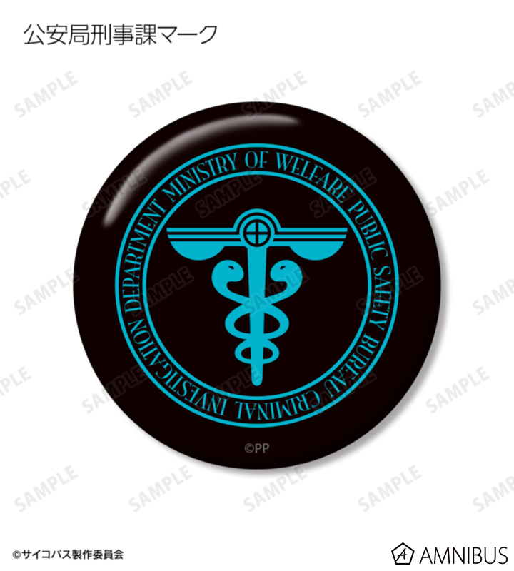 公安局刑事課マーク、シビュラマーク、コミッサ太郎のイラストを缶バッジ3個セットに仕上げました。
