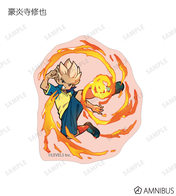 くるみつさん描きおこしイラストの円堂守、豪炎寺修也、鬼道有人、風丸一郎太、アフロディ、佐久間次郎、源田幸次郎、吹雪士郎、綱海条介、立向居勇気、不動明王、レーゼ、グラン、バーン、ガゼルをダイカットのステッカーに仕上げました。
