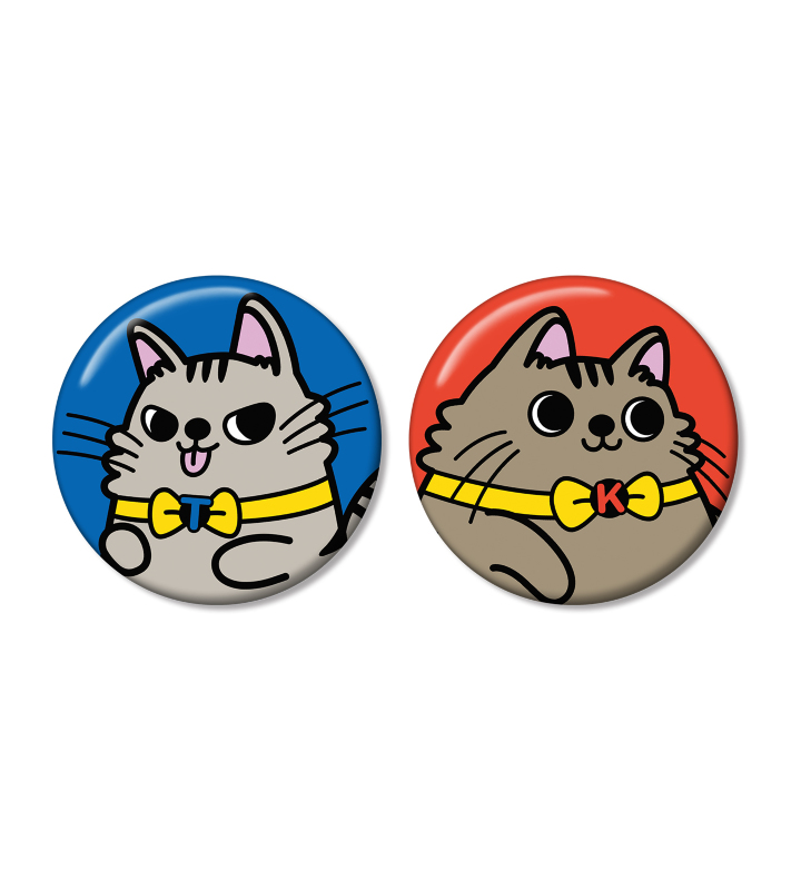 小林さんの愛猫トロとカツオを缶バッジに仕上げました。