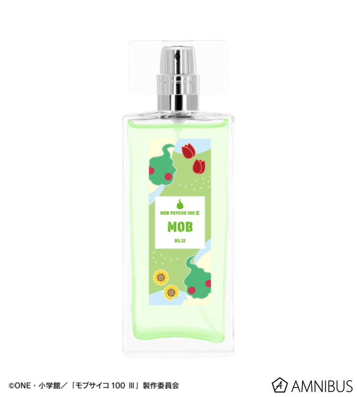 影山茂夫をイメージした香水で、香水としてはもちろん、ルームフレグランスやお部屋に飾ってインテリアとしてもお使いいただけるアイテムです。