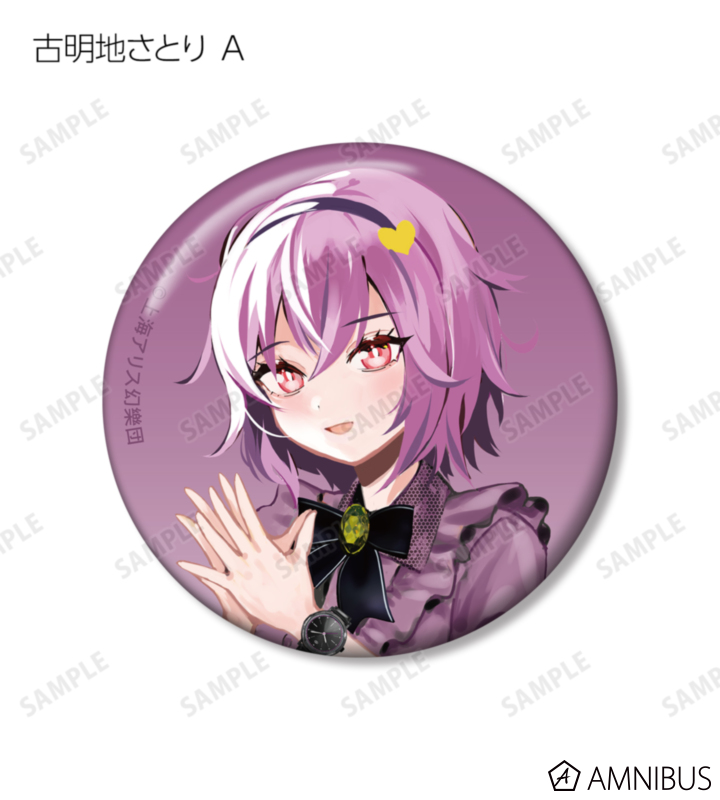 松本能人描き起こしイラストの博麗霊夢、霧雨魔理沙、十六夜咲夜、古明地さとり、古明地こいしを缶バッジに仕上げました。