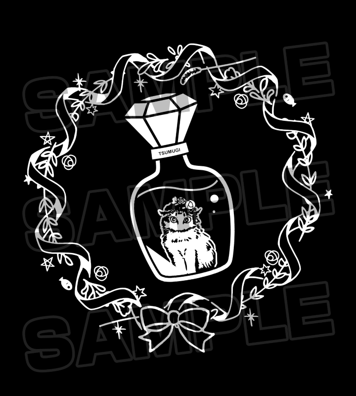 香るものが好きなので、つむぎくんを香水の瓶に入れて宝物感を出しました。
