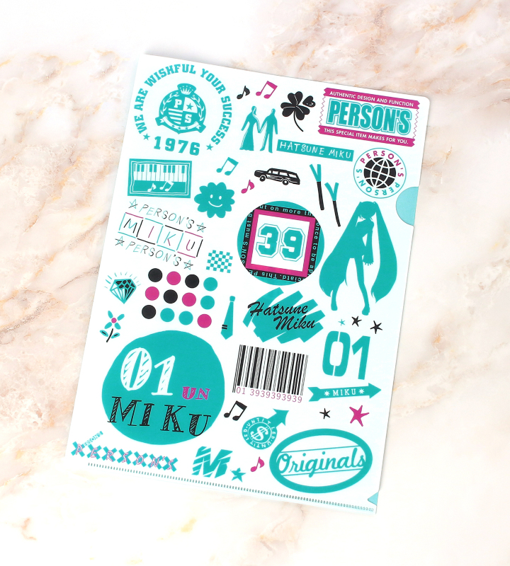 初音ミクたち『ピアプロキャラクターズ』×「PERSON’S」のコラボレーションアイテム「PERSON'Sコラボ 初音ミク クリアファイル」の登場です。