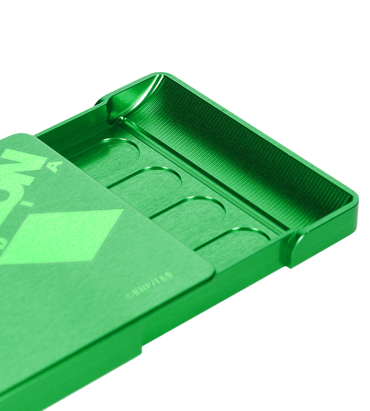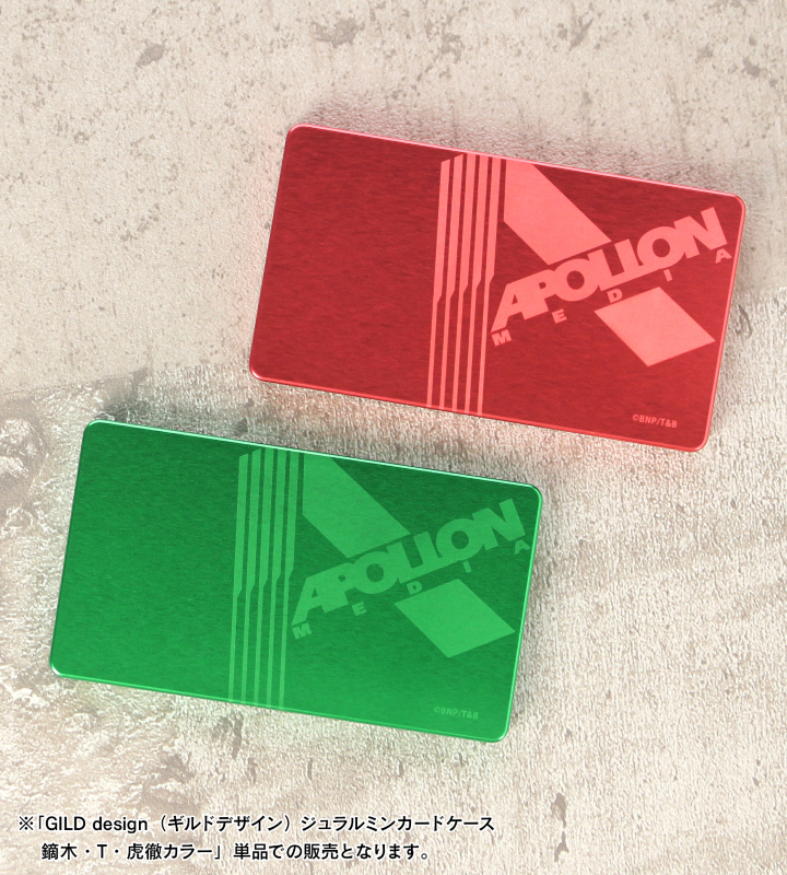 『TIGER & BUNNY』×「GILD design」のコラボレーションアイテム「GILD design(ギルドデザイン) ジュラルミンカードケース 鏑木・T・虎徹カラー」の登場です。 GILD designは「スマートフォンを本気で守る」をコンセプトに、航空機や自動車部品に使用される高強度ジュラルミンの無垢材から削り出したアルミケースを製作するブランドです。 アポロンメディアのロゴマークのプリントを施し、鏑木・T・虎徹が使用しているようなカードケースをイメージしたデザインに仕上げました。 本体内部機構では、取り出し口の3次元加工によりカードが取り出しやすくなっています。 ジュラルミンから削り出して製作したカードケースで、ビジネスシーンにもマッチするアイテムです。