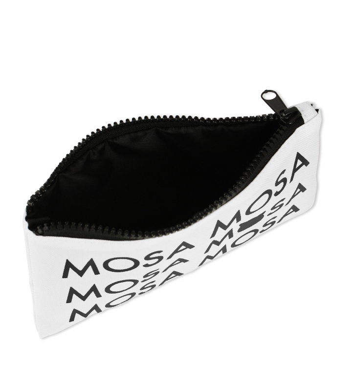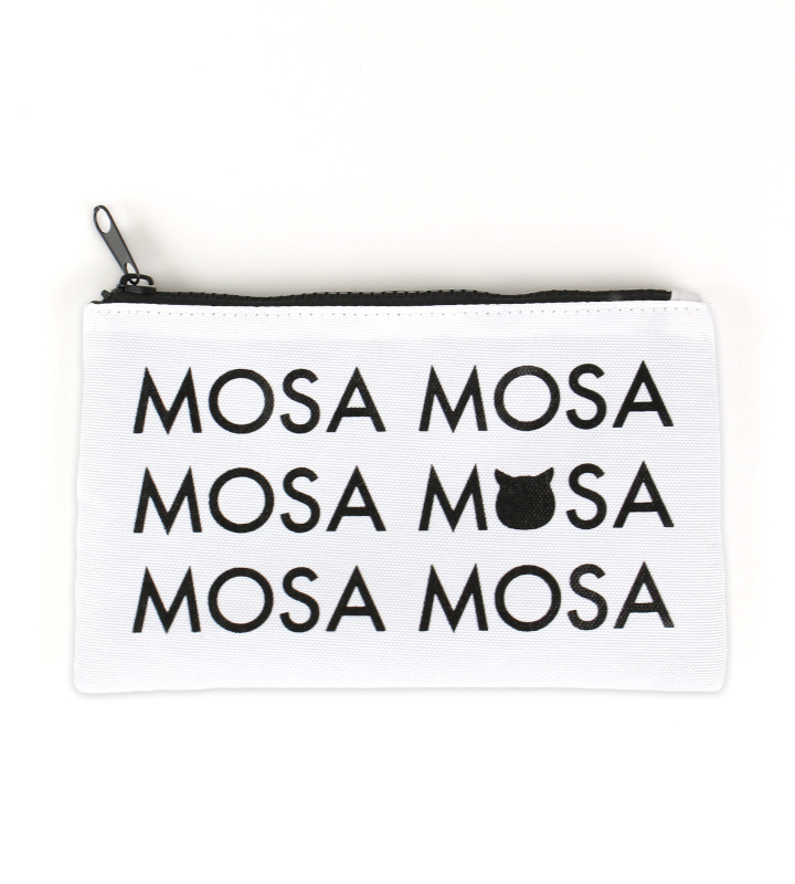 ポーチのMOSAの文字もデザイナーさんに何パターン出していただいて選びました…!"