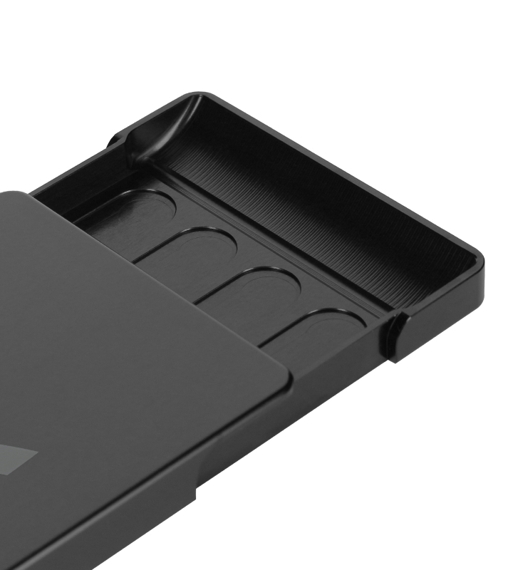 ジュラルミンから削り出して製作したカードケースで、ビジネスシーンにもマッチするアイテムです。