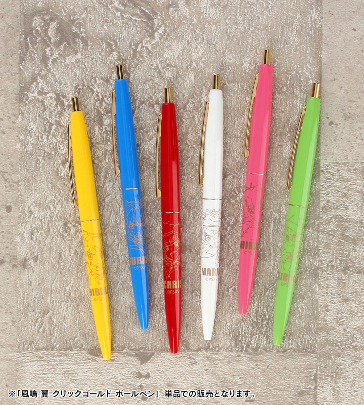 『戦姫絶唱シンフォギアXV』から「BIC」のアイテム「風鳴 翼 クリックゴールド ボールペン」の登場です。 クリックゴールドは、高級感のあるゴールドのクリップとリングが特長のノック式ボールペンです。 風鳴 翼と名前を組み合わせたデザインを装者からイメージしたカラーリングの軸にプリントしました。 コンパクトなサイズ感でボディが軽く、様々なシーンでご使用いただけるアイテムです。